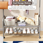 Upgrade your clothing storage with Luzker Metal Garment Stand, designed for durability, functionality, and modern aesthetics. Built from strong, rust-resistant metal, this garment stand provides reliable support for daily wear, seasonal outfits, coats, dresses, and accessories. The sturdy hanging rod is available in 90 cm and 110 cm width options, making it suitable for compact rooms as well as larger spaces. Equipped with lockable wheels, the stand offers smooth mobility when needed and firm stability when locked, ensuring safe and convenient use on all floor types. It comes with multiple storage configurations, including single and double basket mesh organizers for breathable storage of clothes, towels, or accessories, as well as normal single and double storage organizers for shoes, boxes, and folded garments. Available in a wide range of stylish colors β Black, Deep Sea, Gold, Olive Yellow, Grey, Pink, and White β this garment stand complements modern homes, bedrooms, boutiques, showrooms, and laundry areas. Easy to assemble and space-efficient, it is an ideal solution for organized, clutter-free living with a premium look and long-lasting performance.