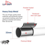 Upgrade your clothing storage with Luzker Metal Garment Stand, designed for durability, functionality, and modern aesthetics. Built from strong, rust-resistant metal, this garment stand provides reliable support for daily wear, seasonal outfits, coats, dresses, and accessories. The sturdy hanging rod is available in 90 cm and 110 cm width options, making it suitable for compact rooms as well as larger spaces. Equipped with lockable wheels, the stand offers smooth mobility when needed and firm stability when locked, ensuring safe and convenient use on all floor types. It comes with multiple storage configurations, including single and double basket mesh organizers for breathable storage of clothes, towels, or accessories, as well as normal single and double storage organizers for shoes, boxes, and folded garments. Available in a wide range of stylish colors β Black, Deep Sea, Gold, Olive Yellow, Grey, Pink, and White β this garment stand complements modern homes, bedrooms, boutiques, showrooms, and laundry areas. Easy to assemble and space-efficient, it is an ideal solution for organized, clutter-free living with a premium look and long-lasting performance.