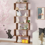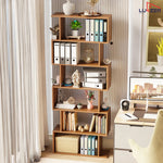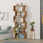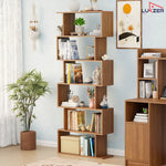 - Lukzer 6-Layer S-Shaped Ladder Engineered Wood Open Bookshelf Rack (MR-002, Light Oak)