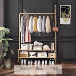 Upgrade your clothing storage with Luzker Metal Garment Stand, designed for durability, functionality, and modern aesthetics. Built from strong, rust-resistant metal, this garment stand provides reliable support for daily wear, seasonal outfits, coats, dresses, and accessories. The sturdy hanging rod is available in 90 cm and 110 cm width options, making it suitable for compact rooms as well as larger spaces. Equipped with lockable wheels, the stand offers smooth mobility when needed and firm stability when locked, ensuring safe and convenient use on all floor types. It comes with multiple storage configurations, including single and double basket mesh organizers for breathable storage of clothes, towels, or accessories, as well as normal single and double storage organizers for shoes, boxes, and folded garments. Available in a wide range of stylish colors – Black, Deep Sea, Gold, Olive Yellow, Grey, Pink, and White – this garment stand complements modern homes, bedrooms, boutiques, showrooms, and laundry areas. Easy to assemble and space-efficient, it is an ideal solution for organized, clutter-free living with a premium look and long-lasting performance.