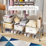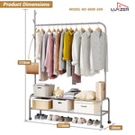 Upgrade your clothing storage with Luzker Metal Garment Stand, designed for durability, functionality, and modern aesthetics. Built from strong, rust-resistant metal, this garment stand provides reliable support for daily wear, seasonal outfits, coats, dresses, and accessories. The sturdy hanging rod is available in 90 cm and 110 cm width options, making it suitable for compact rooms as well as larger spaces. Equipped with lockable wheels, the stand offers smooth mobility when needed and firm stability when locked, ensuring safe and convenient use on all floor types. It comes with multiple storage configurations, including single and double basket mesh organizers for breathable storage of clothes, towels, or accessories, as well as normal single and double storage organizers for shoes, boxes, and folded garments. Available in a wide range of stylish colors – Black, Deep Sea, Gold, Olive Yellow, Grey, Pink, and White – this garment stand complements modern homes, bedrooms, boutiques, showrooms, and laundry areas. Easy to assemble and space-efficient, it is an ideal solution for organized, clutter-free living with a premium look and long-lasting performance.
