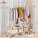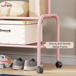 Upgrade your clothing storage with Luzker Metal Garment Stand, designed for durability, functionality, and modern aesthetics. Built from strong, rust-resistant metal, this garment stand provides reliable support for daily wear, seasonal outfits, coats, dresses, and accessories. The sturdy hanging rod is available in 90 cm and 110 cm width options, making it suitable for compact rooms as well as larger spaces. Equipped with lockable wheels, the stand offers smooth mobility when needed and firm stability when locked, ensuring safe and convenient use on all floor types. It comes with multiple storage configurations, including single and double basket mesh organizers for breathable storage of clothes, towels, or accessories, as well as normal single and double storage organizers for shoes, boxes, and folded garments. Available in a wide range of stylish colors – Black, Deep Sea, Gold, Olive Yellow, Grey, Pink, and White – this garment stand complements modern homes, bedrooms, boutiques, showrooms, and laundry areas. Easy to assemble and space-efficient, it is an ideal solution for organized, clutter-free living with a premium look and long-lasting performance.
