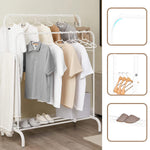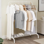 Featuring a spacious bottom storage shelf, this garment stand is perfect for storing shoes, storage boxes, bags, or folded clothes, helping you maintain a neat and organized space. Its well-balanced structure ensures stability while efficiently utilizing vertical space, making it ideal for bedrooms, dressing rooms, apartments, hostels, boutiques, and showrooms.