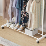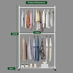 Organize your wardrobe efficiently with the Lukzer Metal Double Rod Cloth Stand, designed for modern homes, bedrooms, boutiques, and showrooms. Crafted from durable, high-quality metal with a sleek white finish, this rolling garment rack offers...