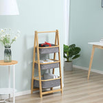 Lukzer 3 Layer Foldable Bamboo Storage Rack with Fabric Baskets – Multipurpose Eco-Friendly Space-Saving Ladder Shelf Organizer for Laundry, Bathroom, Bedroom, Living Room & Closet (Grey)