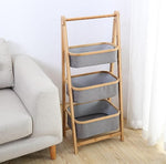 - Lukzer 3 Layer Foldable Bamboo Storage Rack with Fabric Baskets – Multipurpose Eco-Friendly Space-Saving Ladder Shelf Organizer for Laundry, Bathroom, Bedroom, Living Room & Closet (Grey)
