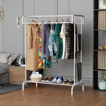- Lukzer Heavy-Duty Double Rod Garment Rack – Bottom Shelf, MGS-004 (Black/White)