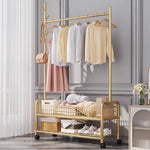 Upgrade your clothing storage with Luzker Metal Garment Stand, designed for durability, functionality, and modern aesthetics. Built from strong, rust-resistant metal, this garment stand provides reliable support for daily wear, seasonal outfits, coats, dresses, and accessories. The sturdy hanging rod is available in 90 cm and 110 cm width options, making it suitable for compact rooms as well as larger spaces. Equipped with lockable wheels, the stand offers smooth mobility when needed and firm stability when locked, ensuring safe and convenient use on all floor types. It comes with multiple storage configurations, including single and double basket mesh organizers for breathable storage of clothes, towels, or accessories, as well as normal single and double storage organizers for shoes, boxes, and folded garments. Available in a wide range of stylish colors β Black, Deep Sea, Gold, Olive Yellow, Grey, Pink, and White β this garment stand complements modern homes, bedrooms, boutiques, showrooms, and laundry areas. Easy to assemble and space-efficient, it is an ideal solution for organized, clutter-free living with a premium look and long-lasting performance.