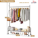Upgrade your clothing storage with Luzker Metal Garment Stand, designed for durability, functionality, and modern aesthetics. Built from strong, rust-resistant metal, this garment stand provides reliable support for daily wear, seasonal outfits, coats, dresses, and accessories. The sturdy hanging rod is available in 90 cm and 110 cm width options, making it suitable for compact rooms as well as larger spaces. Equipped with lockable wheels, the stand offers smooth mobility when needed and firm stability when locked, ensuring safe and convenient use on all floor types. It comes with multiple storage configurations, including single and double basket mesh organizers for breathable storage of clothes, towels, or accessories, as well as normal single and double storage organizers for shoes, boxes, and folded garments. Available in a wide range of stylish colors β Black, Deep Sea, Gold, Olive Yellow, Grey, Pink, and White β this garment stand complements modern homes, bedrooms, boutiques, showrooms, and laundry areas. Easy to assemble and space-efficient, it is an ideal solution for organized, clutter-free living with a premium look and long-lasting performance.