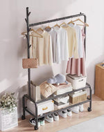 Upgrade your clothing storage with Luzker Metal Garment Stand, designed for durability, functionality, and modern aesthetics. Built from strong, rust-resistant metal, this garment stand provides reliable support for daily wear, seasonal outfits, coats, dresses, and accessories. The sturdy hanging rod is available in 90 cm and 110 cm width options, making it suitable for compact rooms as well as larger spaces. Equipped with lockable wheels, the stand offers smooth mobility when needed and firm stability when locked, ensuring safe and convenient use on all floor types. It comes with multiple storage configurations, including single and double basket mesh organizers for breathable storage of clothes, towels, or accessories, as well as normal single and double storage organizers for shoes, boxes, and folded garments. Available in a wide range of stylish colors – Black, Deep Sea, Gold, Olive Yellow, Grey, Pink, and White – this garment stand complements modern homes, bedrooms, boutiques, showrooms, and laundry areas. Easy to assemble and space-efficient, it is an ideal solution for organized, clutter-free living with a premium look and long-lasting performance.