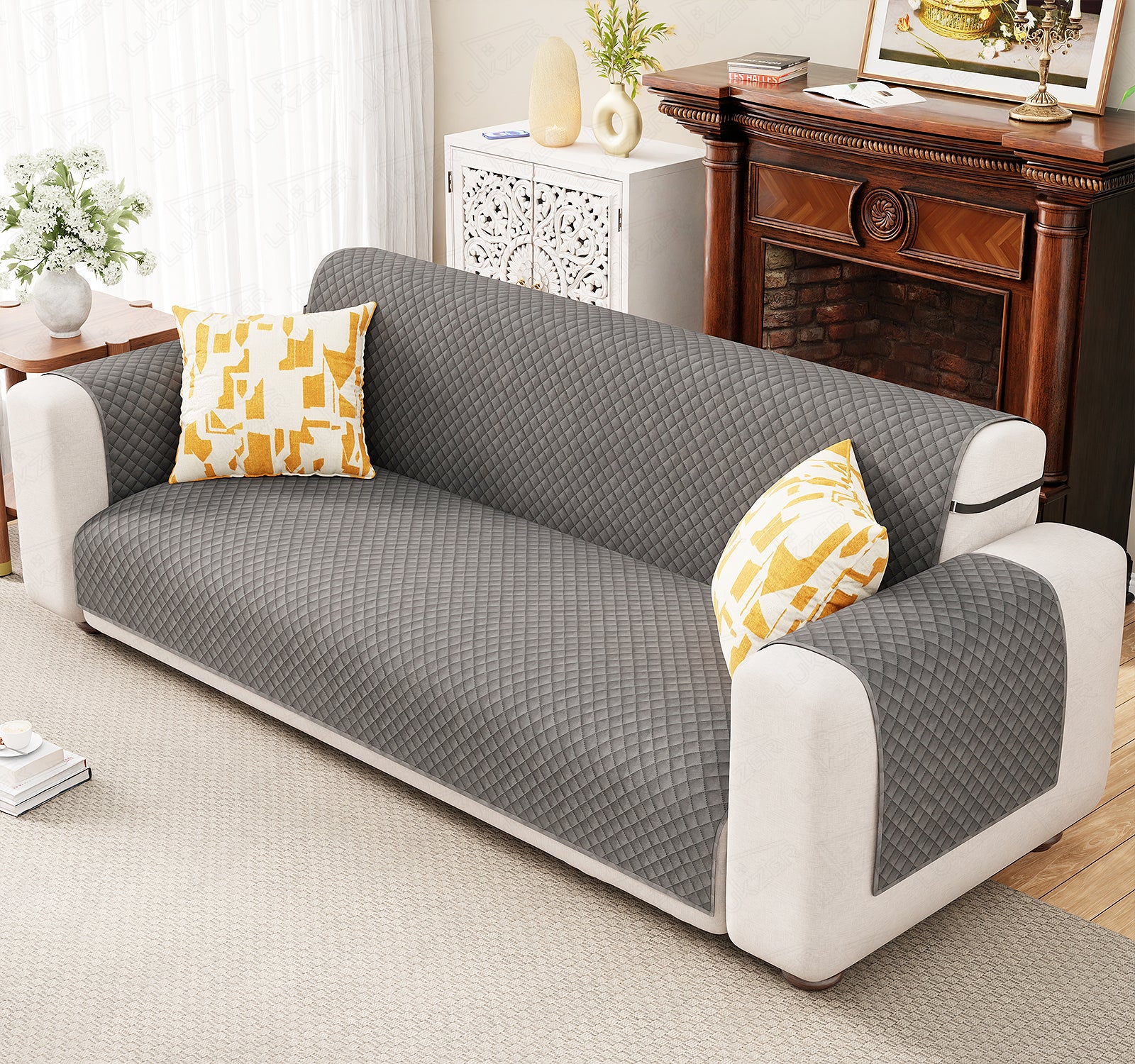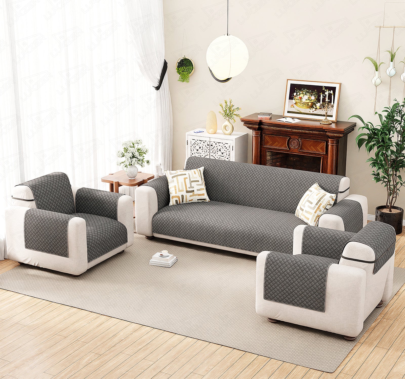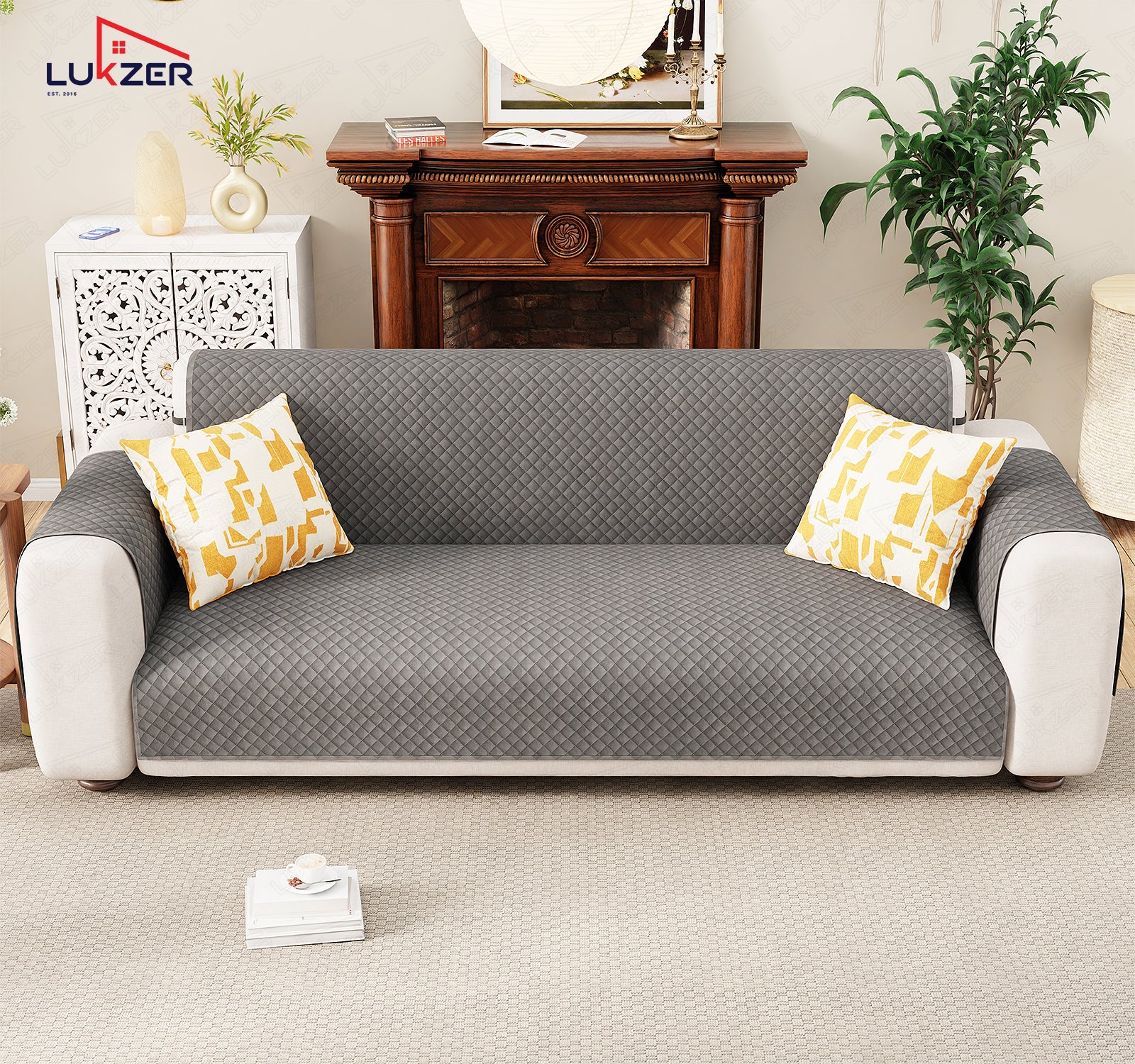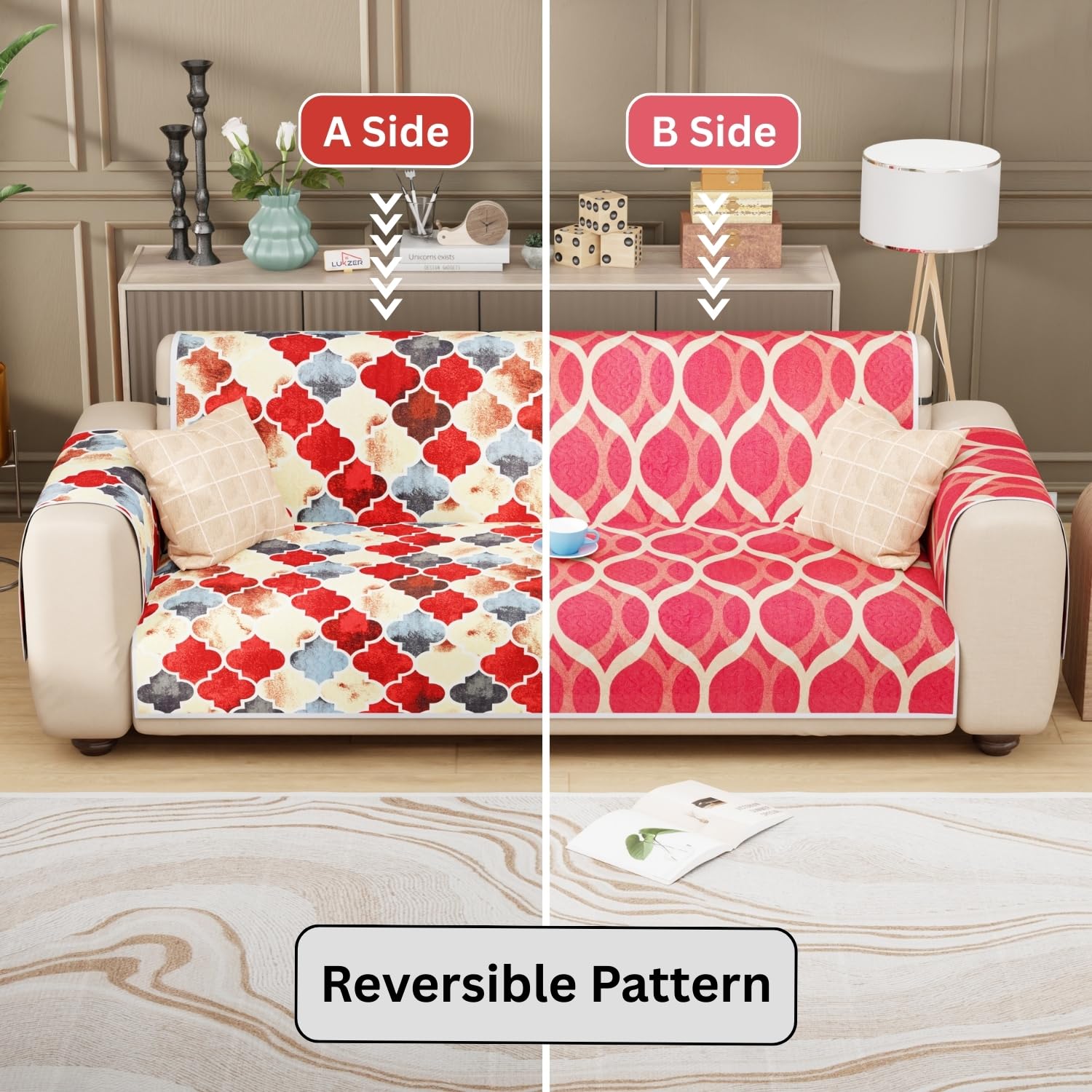 Lukzer Quilted Reversible Sofa Cover Mat with Arms | Polyester Blend 350 GSM Full Coverage & Back Belt for Stability | Washable Furniture Protector.