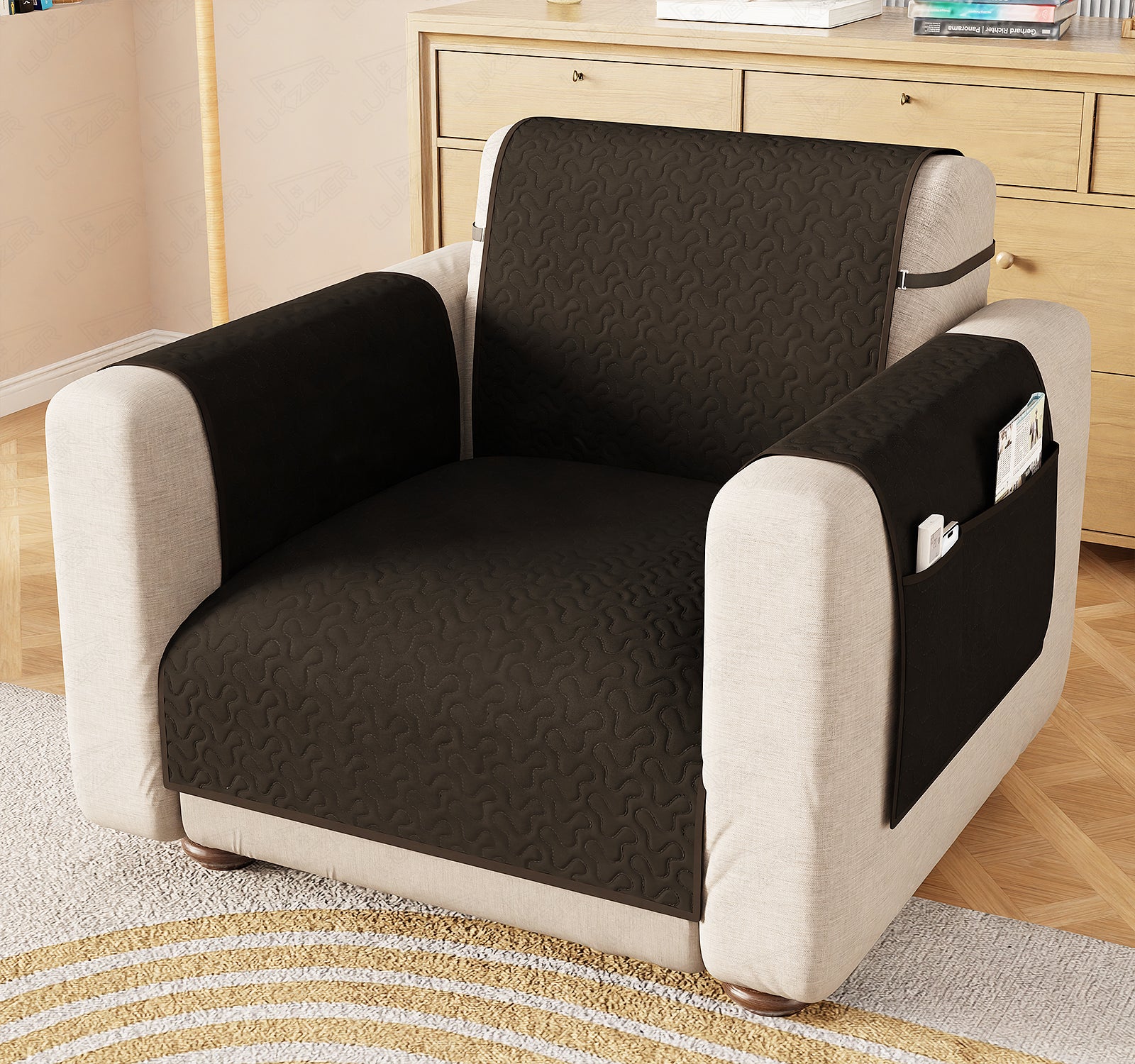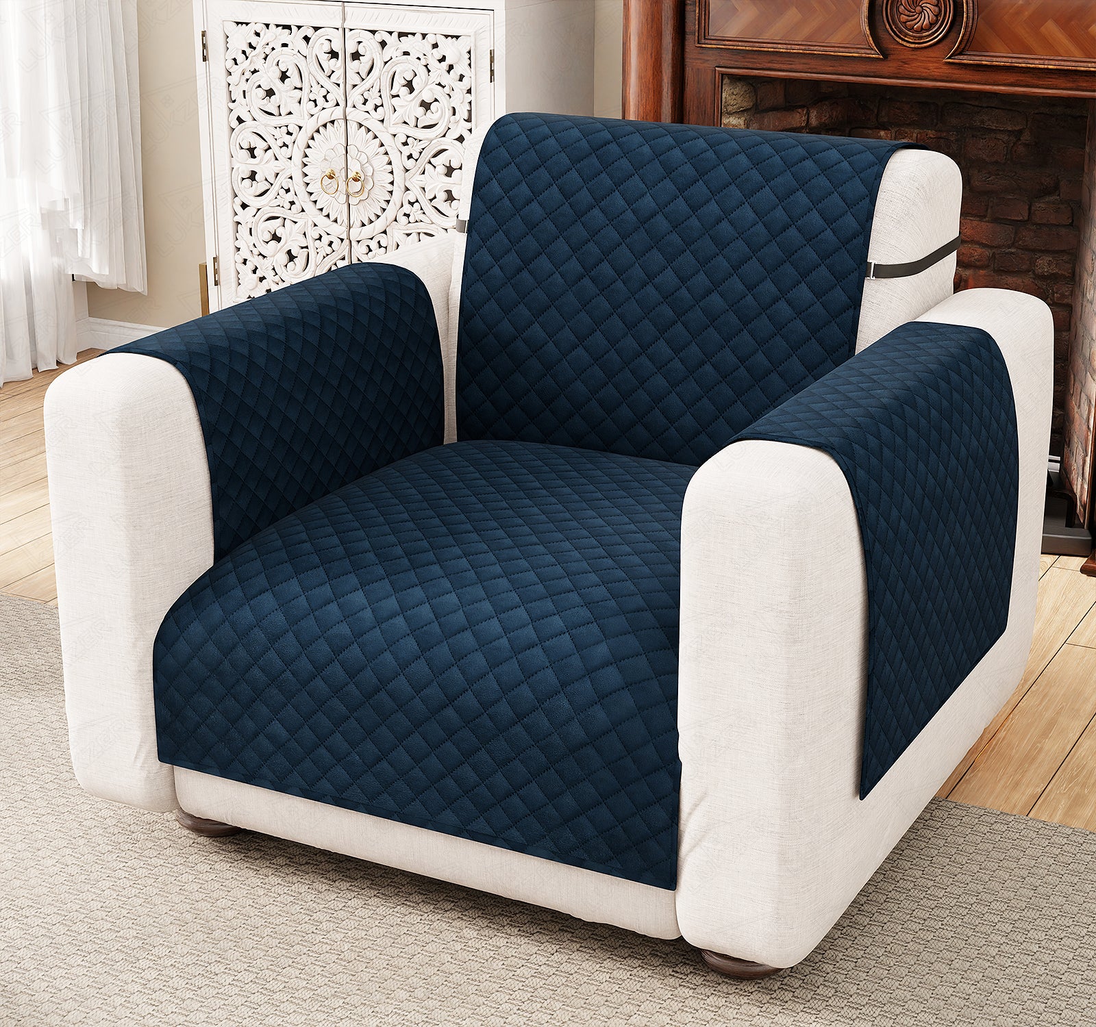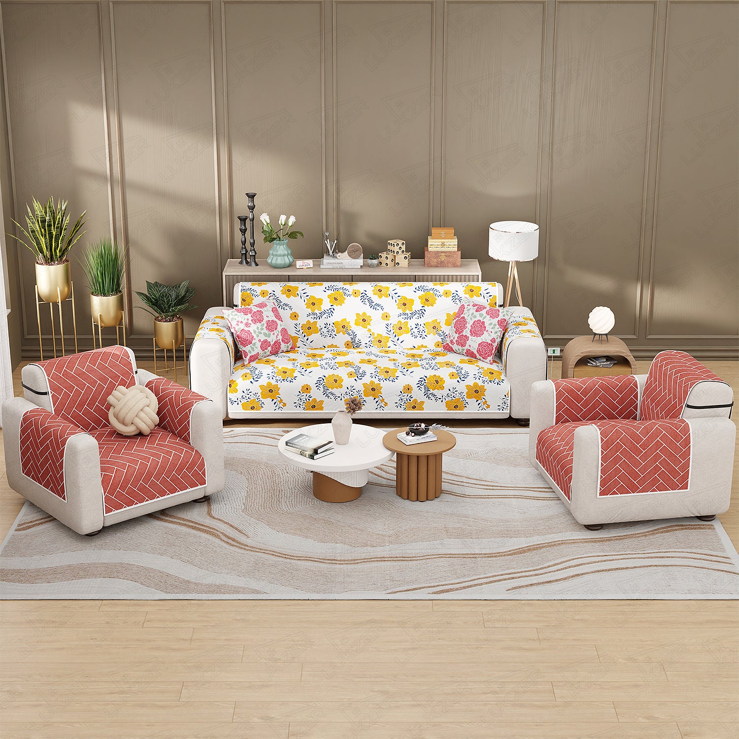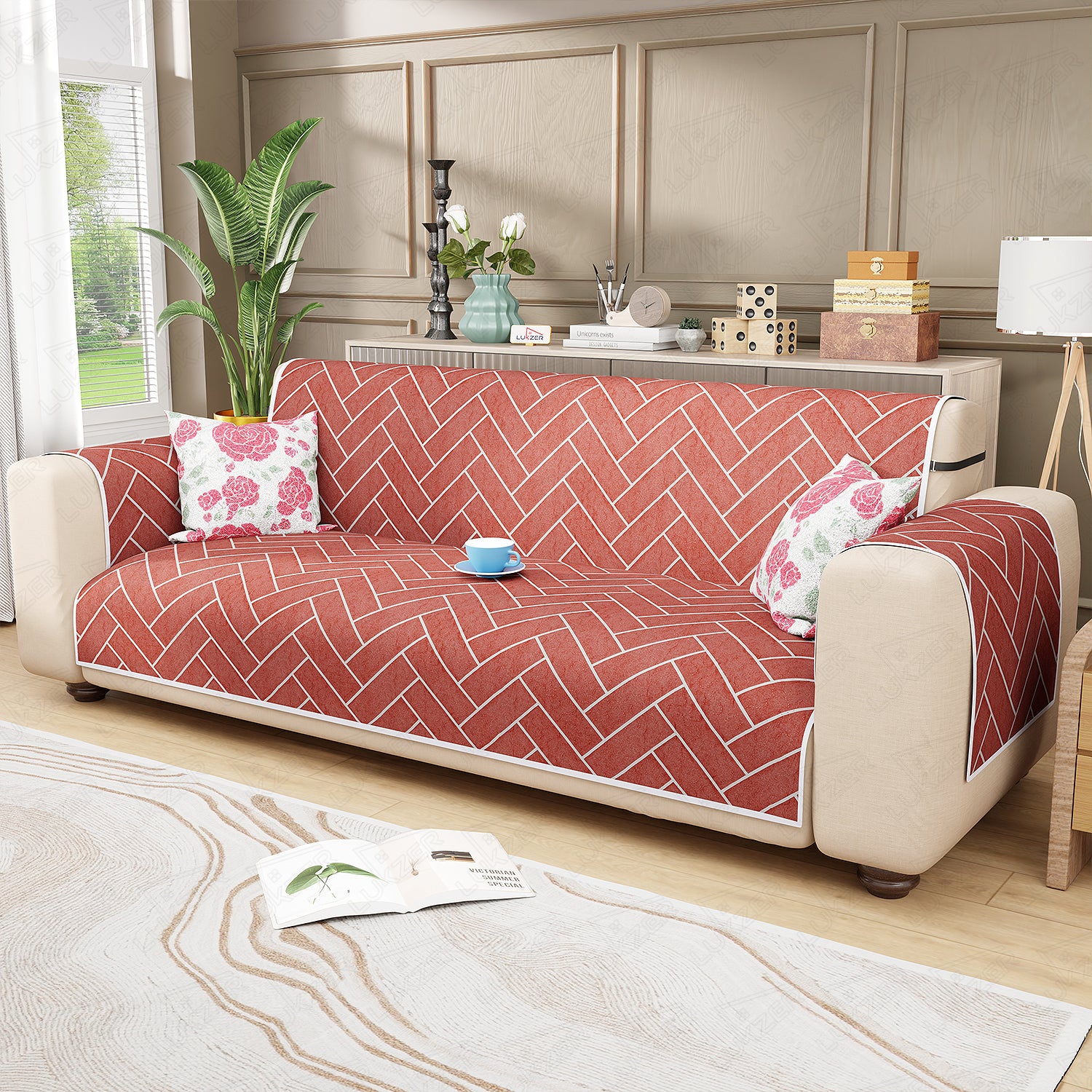 Lukzer Quilted Reversible Sofa Cover Mat with Arms | Polyester Blend 350 GSM Full Coverage & Back Belt for Stability | Washable Furniture Protector.