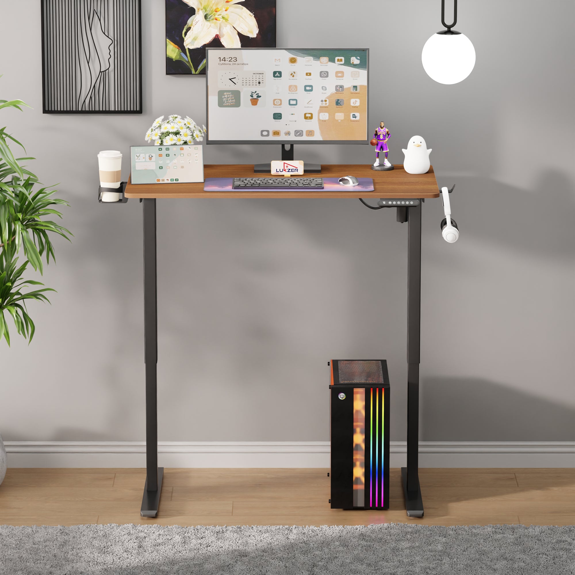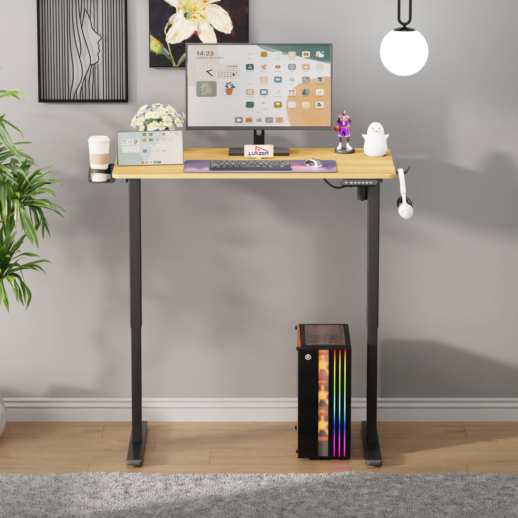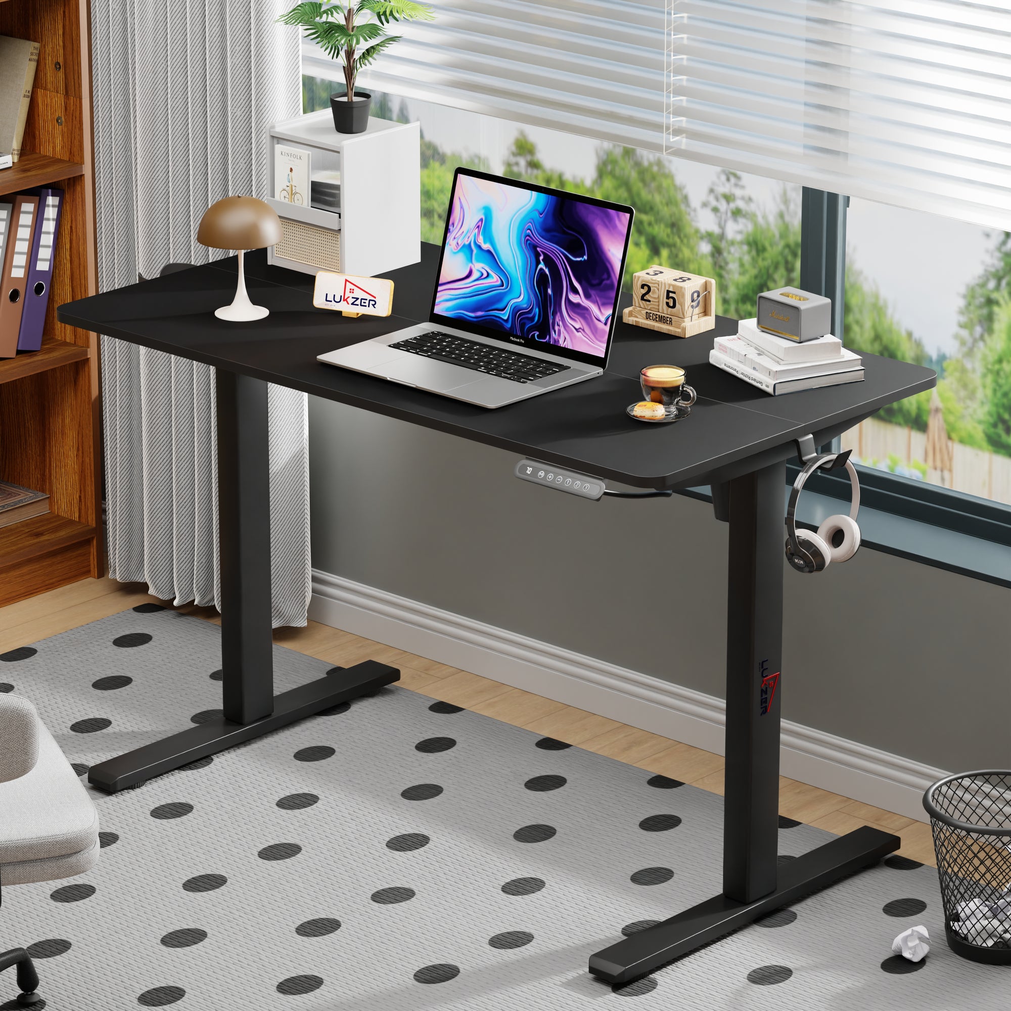 Lukzer Electric Automatic Height Adjustable Sit Stand Desk for Home & Office | EST - 003 | (Black & Oak Brown/Black & Light Oak/Black & Black/White & White/White & Oak Light/White & Oak Brown)
