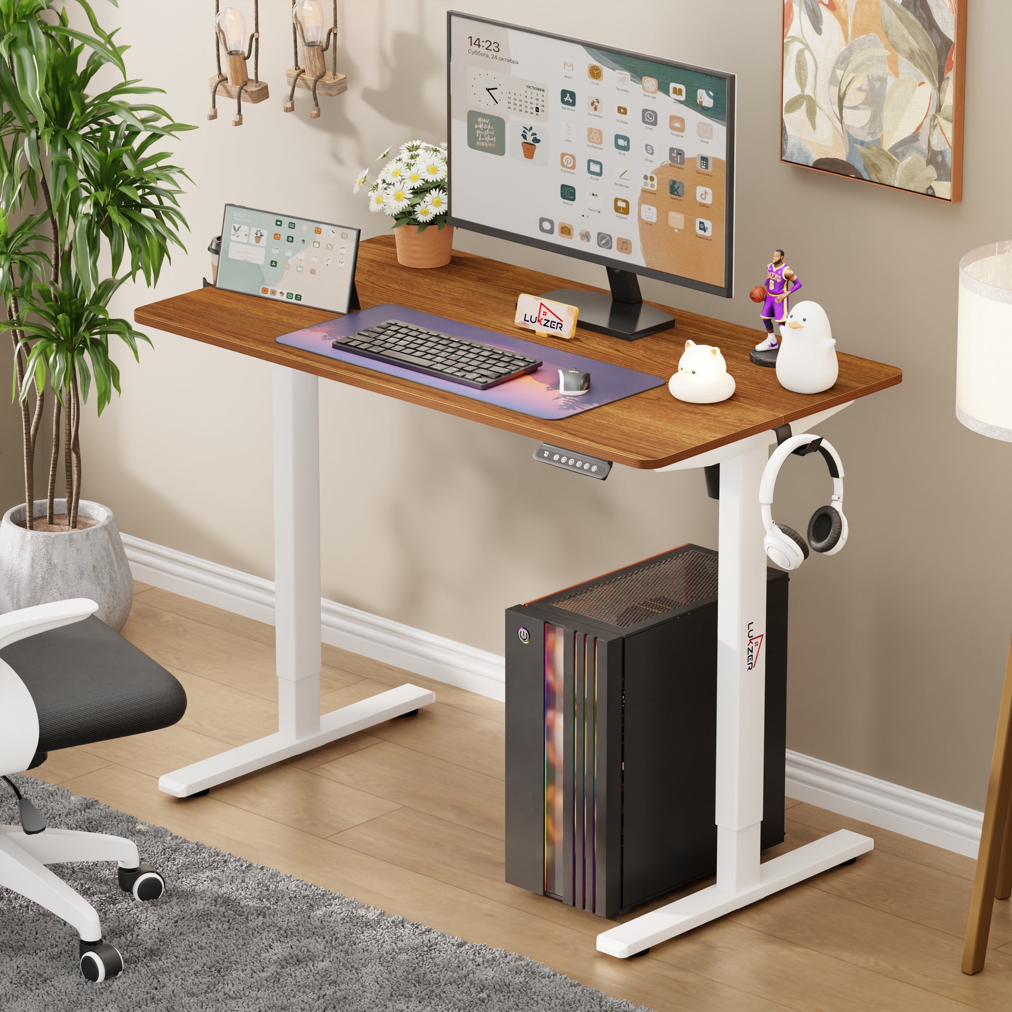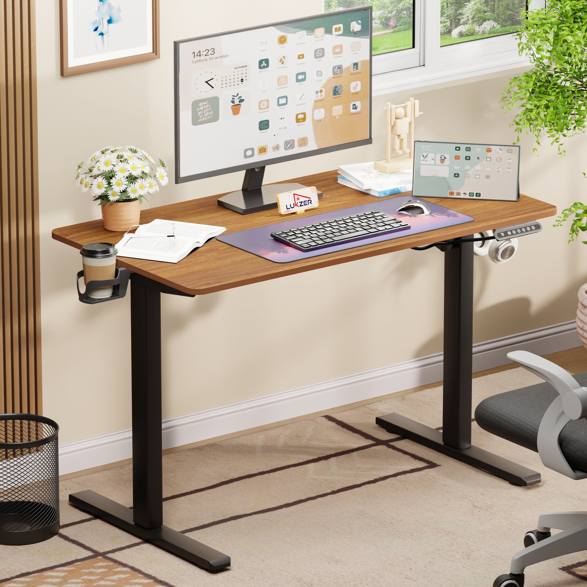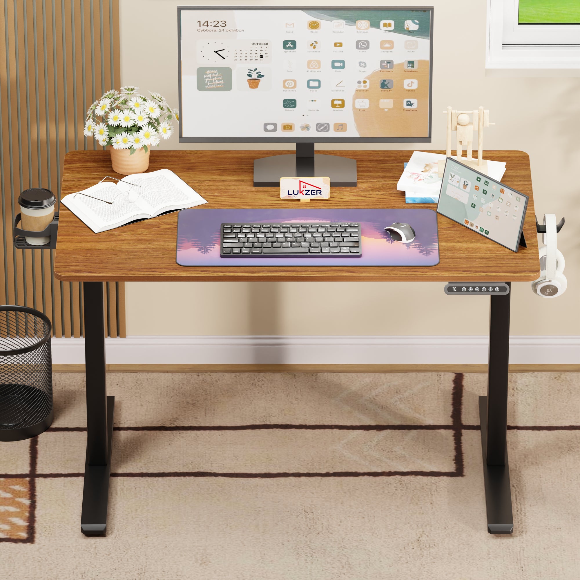 Lukzer Electric Automatic Height Adjustable Sit Stand Desk for Home & Office | EST - 003 | (Black & Oak Brown/Black & Light Oak/Black & Black/White & White/White & Oak Light/White & Oak Brown)