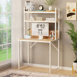 Lukzer 3-Layer Metal & Wooden Computer Desk & Study Table with Bookshelf (MST-006/Oak Light)