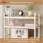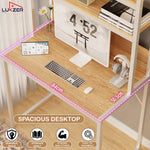 Upgrade your workspace with the Lukzer 3-Layer Metal & Wood Standing Computer Desk, designed to combine functionality, durability, and modern aesthetics. Built with a sturdy metal frame and premium engineered wood top, this desk ensures lasting stability and strength. It features two open bookshelves and additional storage units, providing ample space for books, office supplies, and décor while keeping your workspace organized and clutter-free. The spacious tabletop comfortably accommodates laptops, monitors, and other essentials, making it perfect for home offices, study rooms, or professional setups. Its sleek, contemporary design fits seamlessly into any interior style, offering both practicality and visual appeal. Easy to assemble with DIY (Do It Yourself) installation, all fittings and instructions are included. Available in two elegant color combinations – White & Oak Light and Black & White, the Lukzer MST-006 Desk delivers smart design for modern living.