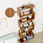 Lukzer 6-Layer S-Shaped Ladder Engineered Wood Open Bookshelf Rack (MR-002, Oak Brown)