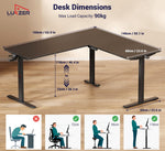 Lukzer L-Shape Electric Height Adjustable Desk (EST-001/UC), designed to maximize your corner space with generous dimensions of 160cm x 140cm and a 60cm depth. Featuring a beautiful engineered wood top supported by a sturdy metal frame, this sit-stand desk seamlessly blends modern aesthetics with heavy-duty functionality. Transition smoothly from a comfortable sitting height of 72cm up to a standing height of 118cm with the motorized lift system, which can be easily operated using the smart digital panel or the convenient remote control. Built-in USB and Type-C charging ports keep your devices powered up without cable clutter. Ideal for multi-monitor setups, gaming, trading, or corporate home offices, this desk comes complete with functional accessories, an easy DIY setup, and a 1-year warranty on mechanical defects (physical damage not covered). Please note: To ensure safe delivery, this desk is shipped in two separate boxes that may arrive 1 to 2 days apart.