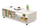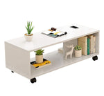 Lukzer Engineered Wood Center Table with Wheels Open Storage Organizer (CT-003/White)