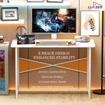 Lukzer Wooden Study Table (MST-009), designed for modern home and office use. Built with a strong powder-coated metal frame available in White and Black, this desk features reinforced X-brace support that enhances stability and reduces wobble during daily work or gaming sessions. The tabletop is made from premium engineered wood and is offered in Oak Brown, White, and Black finishes, delivering a smooth, stylish, and practical work surface. With well-balanced dimensions of 100 cm (W) Γ 75 cm (H) Γ 60 cm (D), the desk provides ample space for laptops, PCs, writing, and gaming accessories while fitting comfortably in bedrooms, study rooms, and home offices. Adjustable foot pads ensure stability on uneven floors and help protect surfaces. Supplied in a DIY assembly format, the desk includes all required hardware for easy setup. Designed for durability, comfort, and everyday productivity, this Lukzer workstation is a reliable choice for modern interiors.