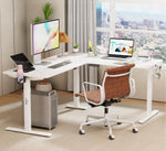 Lukzer L-Shape Electric Height Adjustable Study Desk (EST-001/White & White)