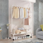 - Lukzer MGR-007 White Metal Garment Stand with Wheels | Heavy-Duty Clothes Rack with Shelf
