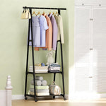 Lukzer A-Shaped Metal Garment Stand with Dual Storage Shelves & Wheels (MGR-010/Black)