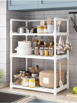 Lukzer Modular Kitchen Storage Rack Plastic & Metal Organizer (3-Tier/PMR-004/White)