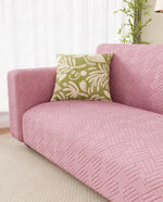 - Lukzer Pastel Shades Textured Sofa Cover - Pink Abstract (SC-168-01)