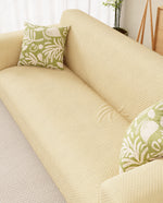 - Lukzer Pastel Shades Textured Sofa Cover - Yellow Curved Diamond (SC-087-01)