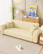 Lukzer Pastel Shades Textured Sofa Cover - Yellow Ripple Lines (SC-163-01)