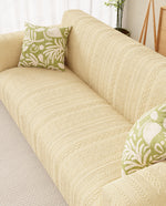 - Lukzer Pastel Shades Textured Sofa Cover - Yellow Zigzag (SC-080-01)