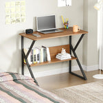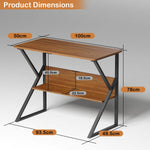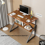 Lukzer Modern Engineered Wood Computer Desk with Bookshelf Oak Brown Top & Black Frame (MST-001)