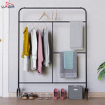 Add elegance and functionality to your home with the Lukzer Multipurpose Metal Garment Stand. Featuring a sturdy metal frame with a sleek black matte finish, this stand is perfect for organizing clothes, towels, and accessories. Its smart design offers multiple hanging bars and a spacious base for shoes or storage baskets, making it ideal for bedrooms, laundry areas, or compact spaces.