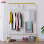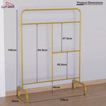 Lukzer Multi-Purpose Metal Garment Stand with Multi-Level Hanging Bars – 145x109x40cm (Black/Gold/White, Model: MGS-005)